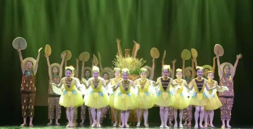 喏,那里有只小青蟲在偷吃麥穗呢!小鳥、稻草人如何合作趕走小青蟲。17舞蹈編導(dǎo)(少兒舞蹈)的同學(xué)們向大家展示學(xué)習(xí)劇目《麥田童話》。