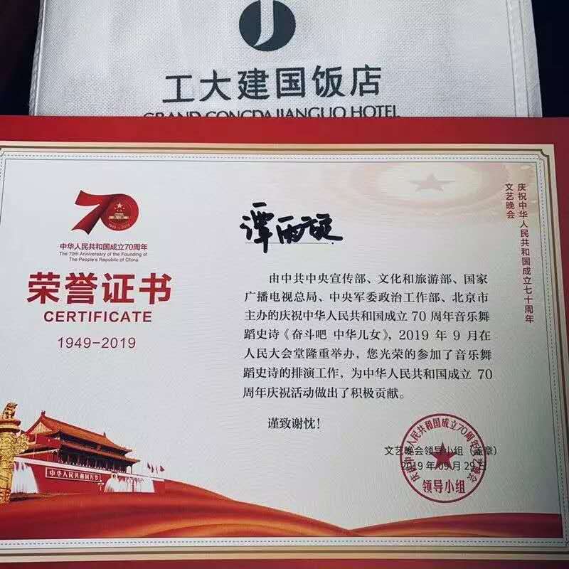 國(guó)慶前夕,慶祝中華人民共和國(guó)成立70周年大型文藝晚會(huì)《奮斗吧 中華兒女》在北京舉行。習(xí)近平、李克強(qiáng)、栗戰(zhàn)書(shū)、汪洋、王滬寧、趙樂(lè)際、韓正、王岐山等黨和國(guó)家領(lǐng)導(dǎo)人,同4000多名觀眾一起觀看演出,共同回顧新中國(guó)成立70年來(lái)的輝煌歷程,共同祝福偉大祖國(guó)的美好前程。我校舞蹈系兩位教師曹晨霄、譚雨旋參與了此次盛大演出的編導(dǎo)。