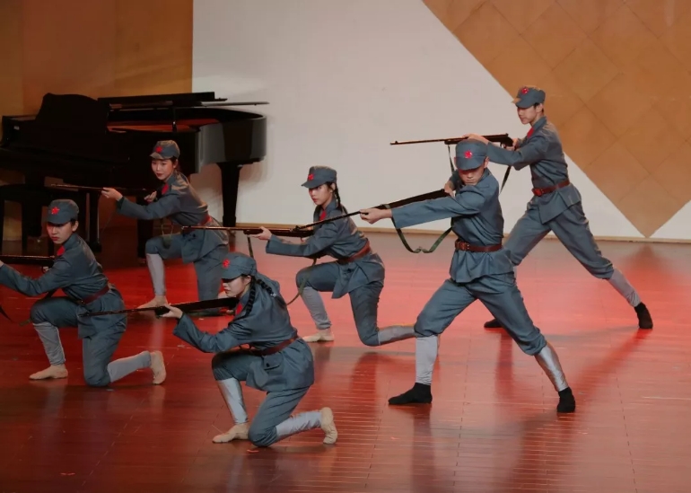 滾滾黃河,滔滔長(zhǎng)江,給我生命,給我力量。紅旗飄飄,軍號(hào)響,劍已出鞘,雷鳴電閃,從軍路上,先輩,浴血奮戰(zhàn),壯我軍魂。18一貫的同學(xué)們用情景劇講述了少年的《行軍夢(mèng)》