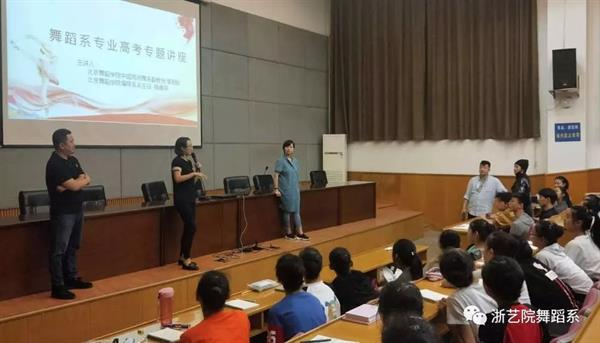 專業(yè)校考是舞蹈高考的一個(gè)重要環(huán)節(jié),為進(jìn)一步增強(qiáng)我系附中學(xué)生對于專業(yè)高考的認(rèn)識(shí),了解各大專業(yè)院校考試的要求和規(guī)則,指導(dǎo)學(xué)生更好地明確考學(xué)目標(biāo)、合理自我定位,并針對性地進(jìn)行高考備考,5月10日我系邀請了北京舞蹈學(xué)院創(chuàng)意學(xué)院編導(dǎo)系主任顧佩英和北京舞蹈學(xué)院中國民間舞系副教授秦麗秋兩位老師來為同學(xué)們做關(guān)于舞蹈專業(yè)高考的考學(xué)指導(dǎo),一同前來的還有長期從事舞蹈創(chuàng)作和教育培訓(xùn)的知名編導(dǎo)田勁老師。此次講座由舞蹈系副主任曹亮紅主持,全體中專學(xué)生和部分學(xué)生家長參加了活動(dòng)。