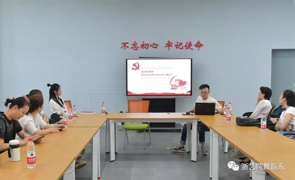 在黨員學(xué)習(xí)室,教工支部書記孫天添上了一堂有情境有情懷的《用紅船精神引航,以舞鑄時(shí)代精彩》黨課,督促舞蹈系全體教工黨員牢記心中舞蹈教育者的使命,勇于為浙江舞蹈開創(chuàng)新的未來(lái)。在莊嚴(yán)的黨旗之下,大家重溫入黨誓詞,時(shí)刻謹(jǐn)記光榮使命。