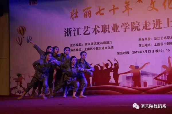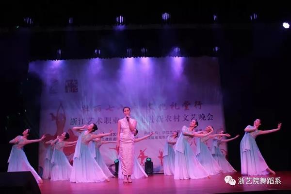 為慶祝新中國(guó)成立70周年,中國(guó)共產(chǎn)黨成立98周年,積極響應(yīng)省文化和旅游廳關(guān)于農(nóng)村文化禮堂建設(shè)要求,7月11日至7月13日,舞蹈系走進(jìn)上虞區(qū)道墟街道錢上村、嵊州市三江街道上東潭村、上虞區(qū)小越街道倪梁村,為家鄉(xiāng)父老送上系里精心準(zhǔn)備的舞蹈專場(chǎng)文藝演出。場(chǎng)內(nèi)座無(wú)虛席,臺(tái)上燈光閃爍,亦古典悠揚(yáng)亦青春靚麗,亦田園風(fēng)格亦童真童趣的一幕幕舞蹈引發(fā)觀眾陣陣掌聲。