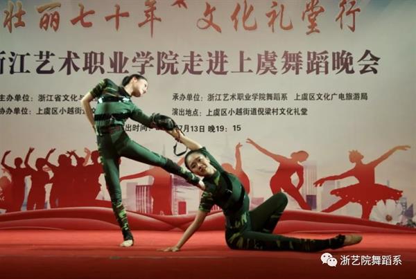 炎炎夏日,擋不住同學(xué)們熱愛(ài)祖國(guó),服務(wù)家鄉(xiāng)人民的熱情;歡聲笑語(yǔ),體現(xiàn)著同學(xué)們?cè)鶎樱虐l(fā)奮斗青春的魅力。服務(wù)農(nóng)村文化禮堂,展現(xiàn)浙藝風(fēng)采,舞蹈系多年來(lái)將藝術(shù)教育與實(shí)踐教育相融合,謳歌美麗祖國(guó),唱響偉大時(shí)代,立足浙片熱土,培育文藝新人。