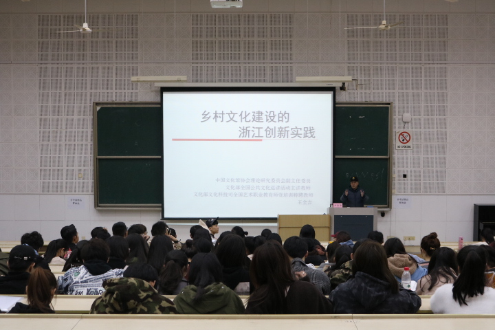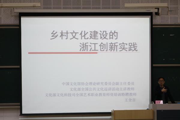 11.22日晚,浙江省文化館黨總支副書(shū)記王全吉來(lái)到我校,為文化管理系公共文化定向專(zhuān)業(yè)學(xué)生作題為《鄉(xiāng)村文化建設(shè)的浙江創(chuàng)新實(shí)踐》專(zhuān)題講座。