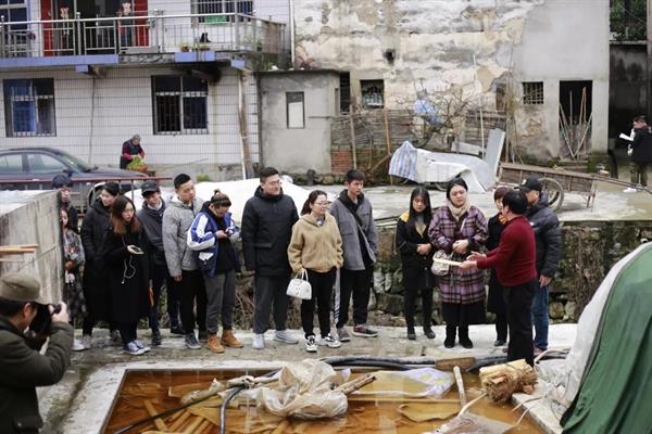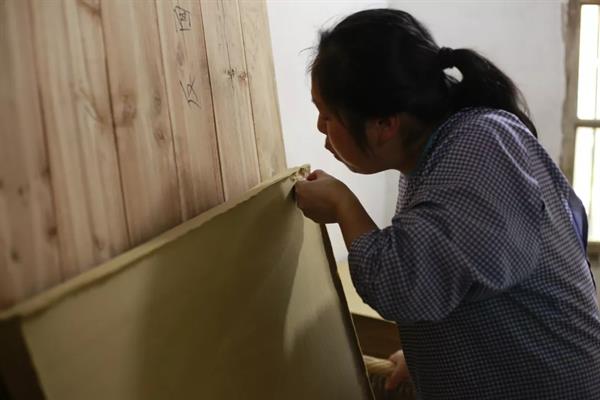 授牌儀式后,文管系師生參觀了富陽(yáng)竹紙制作車間,朱中華為師生詳細(xì)講解了竹紙制作的流程及竹紙的特點(diǎn),部分同學(xué)還親身體驗(yàn)了制作環(huán)節(jié)。