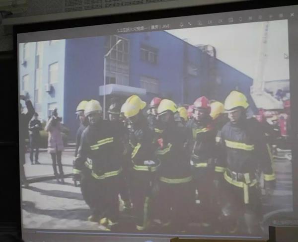 章一立以濱江高教園區(qū)周邊真實火災(zāi)視頻案例開場,通過現(xiàn)場危險狀況的描述,當(dāng)事人的恐懼心理切入消防安全知識主題,以慘痛的火災(zāi)事故引起同學(xué)們對消防安全的重視。他通過一個個真實的視頻案例講述了火災(zāi)蔓延速度之快、濃煙對呼吸道損害之強、火災(zāi)時氣流對皮膚的傷害之深,還沉痛地回憶了幾位消防員戰(zhàn)友因火災(zāi)而獻身的事跡,并對視頻中的英雄們敬禮,全場認(rèn)真肅穆。