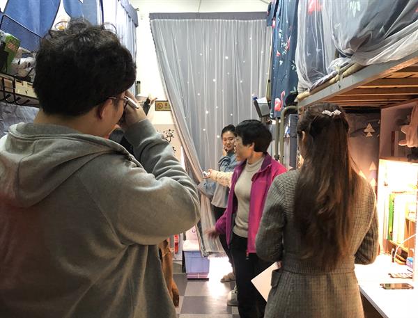 4月上旬,“墨香文管”文化管理系第三屆公寓文化節(jié)舉辦寢室美化大賽,文化管理系黨總支書記金銀琴、系黨總支組織員錢杏芬、系輔導(dǎo)員一行來到文化管理系學(xué)生公寓對(duì)參賽寢室進(jìn)行現(xiàn)場(chǎng)評(píng)分,系團(tuán)學(xué)組成考評(píng)小組一同參與美化大賽驗(yàn)收。