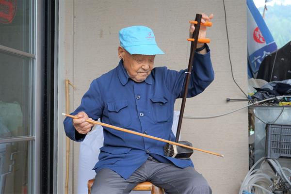 楊日亨隨軍當(dāng)了多年醫(yī)療兵,解放后又回到仙居鄉(xiāng)鎮(zhèn)衛(wèi)生院工作,繼續(xù)救死扶傷。如今老人已經(jīng)五世同堂,享受著新時(shí)代發(fā)展帶來(lái)的巨大惠利。兒孫拿出老先生寫(xiě)的書(shū)法作品,他還用自制的二胡拉了一段《步步高》給大家欣賞。他現(xiàn)在會(huì)上網(wǎng)、會(huì)玩智能手機(jī),還會(huì)彈電子琴。他感慨到,現(xiàn)在的生活變化簡(jiǎn)直太大了,自己過(guò)上了很幸福的日子。