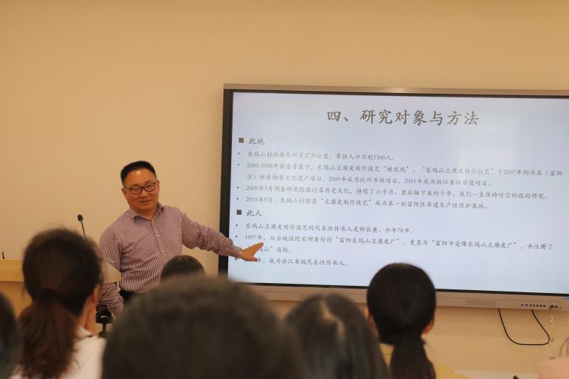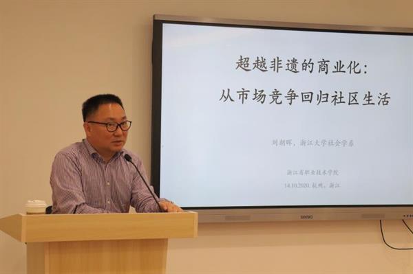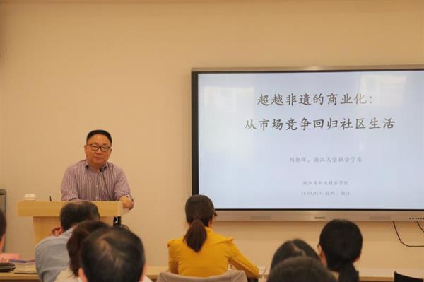 10月14日下午,文化管理系邀請浙江大學(xué)社會學(xué)系教授、博士生導(dǎo)師劉朝暉在圖信中心作題為《超越非遺的商業(yè)價值:從市場競爭回歸社區(qū)生活》的講座。講座由文化管理系主任劉秀峰主持,全體系班子和全體專任教師參加。