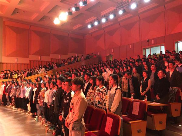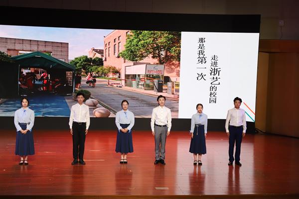 20級定向?qū)I(yè)俞田聰、鐘文韜、楊穎等人朗誦了原創(chuàng)作品《文管一家人》,講述了入校報到以來的浙藝故事和文管故事,他們說,要仰望星空,腳踏實地,乘風破浪,逐夢揚帆。要驕傲的向全世界說,我們是浙藝的青年!