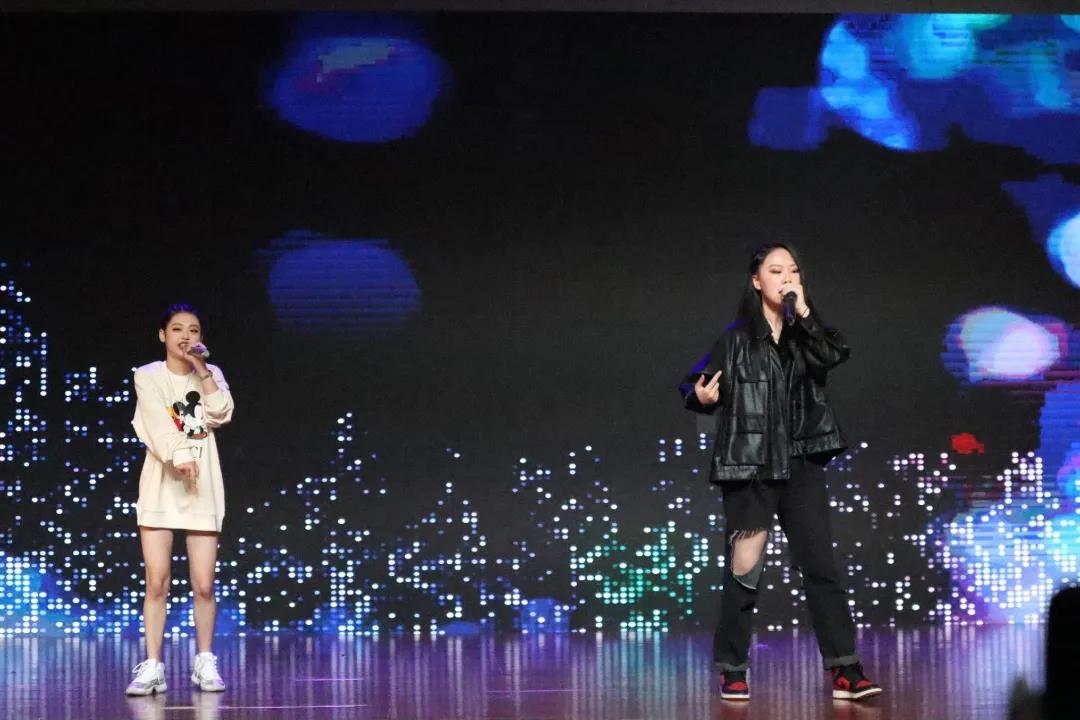 19、20級學生陳靚靚、鄭智健、姜裕欣等人聯(lián)袂帶來的流行歌曲串燒《光年之外之熱愛+b-box+迷蝶香+愛的華爾茲》,用聲音展現(xiàn)了他們的熱情,用熱情綻放了他們的青春。尤其是程博的B-box表演,場下掌聲雷動。