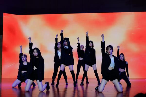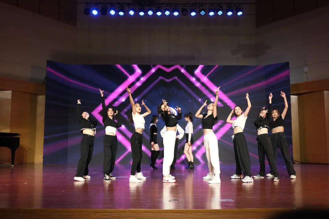 18、19級學生程琳、夏齊贇、周義穎、王婕麗等人帶來的流行舞《flyer》一出場就引起場下歡呼,出彩奪目。
