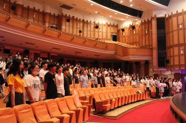 “請(qǐng)全體起立,奏唱國(guó)歌!”伴隨著莊嚴(yán)的國(guó)歌響起,文化管理系2020屆畢業(yè)典禮正式開(kāi)始。