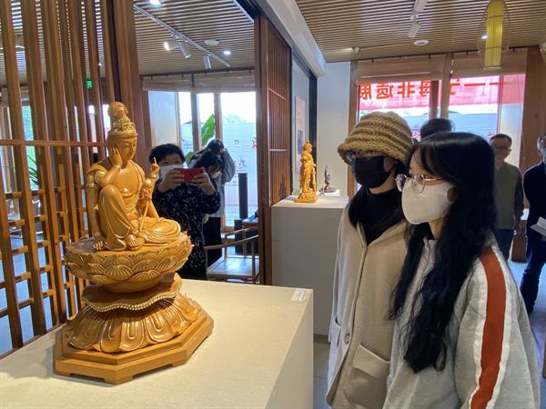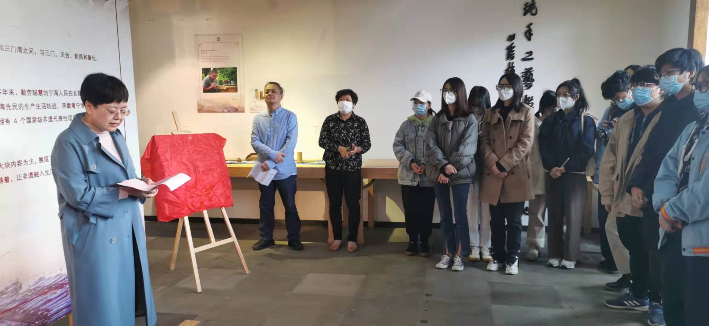 潘亞聰致辭。她詳細介紹了寧海的民間手工藝歷史和現有的非物質文化遺產。她表示,此次與我校聯合開展的寧海非遺展覽他們精心挑選了具有寧海地方特色的傳統技藝和傳統美術項目,以雕、漆、繪三大塊內容為主,展現了寧海非遺深厚的歷史淵源、精湛的技藝流程、獨特的藝術特征,讓寧海非遺看得見、摸得著。未來,期待寧海能和我校有更多的合作,走出去和請進來并舉,讓寧海非遺有效傳承、傳播。