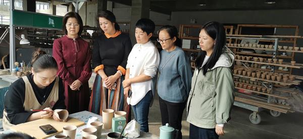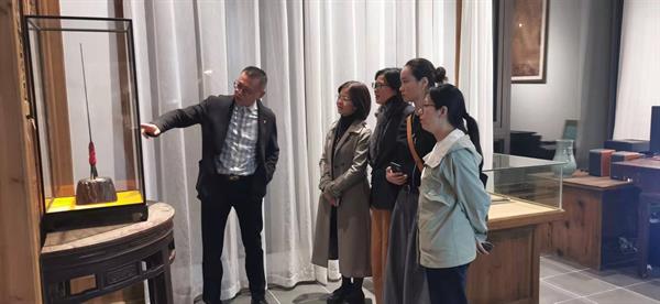 會議期間,劉秀峰一行走訪了龍泉刀劍研究院、龍泉市尚唐瓷藝發(fā)展有限公司,就龍泉寶劍、青瓷的設(shè)計、生產(chǎn)、營銷各方面的問題進行了深入的探討,就新媒體直播、短視頻制作、師生青瓷紋案繪制、創(chuàng)新瓷器作品展覽等項目達成了初步合作意向。老師們還參觀了龍泉青瓷博物館、“追光逐劍”國際刀劍藝術(shù)大展、故宮藏刀劍文物展、青瓷重塑公益跨界設(shè)計主題活動試驗展,同時走訪了21屆公共文化服務(wù)定向員班畢業(yè)生,了解就業(yè)與適崗情況。