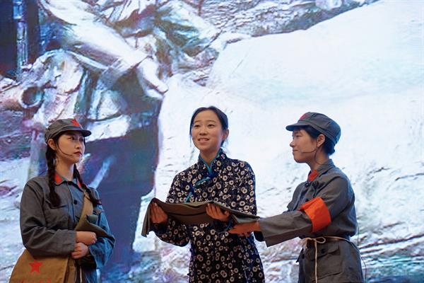 20定向帶來的朗誦情景劇《半條棉被》講述了在湖南省汝城縣沙洲村發(fā)生的一段軍民魚水情深的歷史,故事背后讓人民群眾看到了中國共產黨為民服務的初心,彰顯了共產黨與人民群眾榮辱與共、風雨同舟、生死與共的革命情懷。