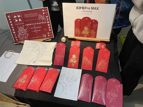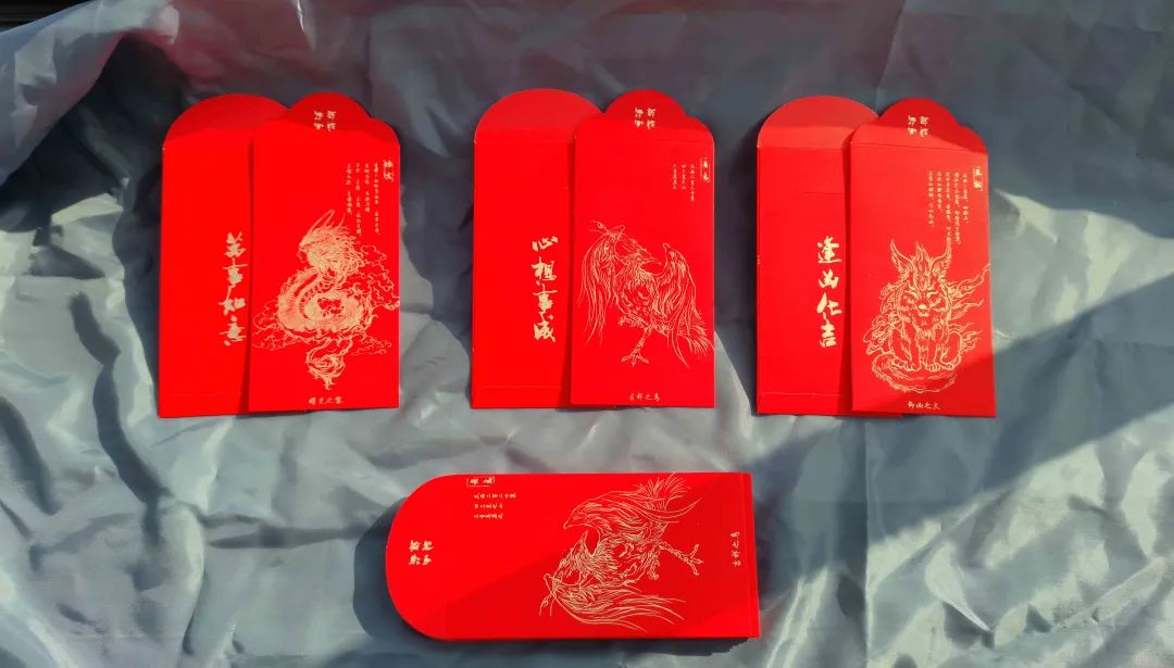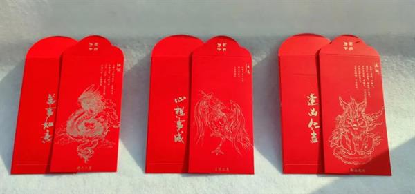 紅包也叫壓歲錢,是過農(nóng)歷春節(jié)時,長輩給小孩兒用紅紙包裹的錢,有“壓祟”之意。據(jù)傳明清時,壓歲錢大多數(shù)是用紅繩串著賜給孩子。民國以后,則演變?yōu)橛迷⒁饧榈募t紙包裹。隨著時代更迭,紅包上的文化內(nèi)涵也逐漸凸顯,衍生出很多別具一格的紅包設(shè)計。本期要推出的是文化管理系18展示藝術(shù)設(shè)計專業(yè)學(xué)生徐懷谷結(jié)合民俗和神話形象創(chuàng)作的——山海經(jīng)系列文創(chuàng)壓歲包。