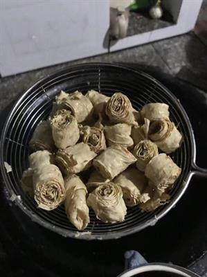 炸響鈴是一道美食,主料是豆腐皮,配料是肉屑,調(diào)料為料酒,鹽等,主要通過油脆炸的方法制作而成。