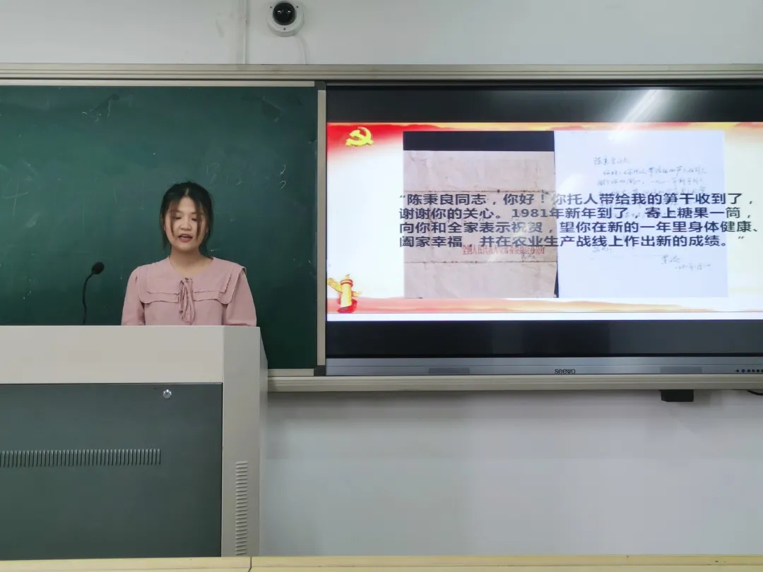 20定向2班姜歌通過(guò)“等待,等待,黎明就要到來(lái)”為主題,從《致林維雁》這首詩(shī)為切入點(diǎn),聲情并茂地講述了身為女兒身的林維雁為衢州解放而犧牲。正是共產(chǎn)黨人的血肉與生命,換來(lái)了我們的美好生活。作為未來(lái)的鄉(xiāng)鎮(zhèn)文化員,他指出,要向烈士學(xué)習(xí)敢作敢為、敢想敢拼敢吃苦的精神,為基層文化獻(xiàn)出自己的綿薄之力,振興家鄉(xiāng)文化。