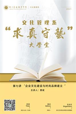 本學期以來,文化管理系聘請國內(nèi)名師、學者和技能大師、行業(yè)專家,組建金牌講師團,傾力打造“求真守藝”大學堂,以加強隊伍建設,提高師資水平,培育教學型、科研型和技能型優(yōu)秀教師團隊。同時,“求真守藝”大學堂也面向?qū)W生開放,通過近距離接觸到行業(yè)專家學者,拓寬學生視野,從而將專業(yè)知識從課堂延伸到課外,從理論走向?qū)嵺`。