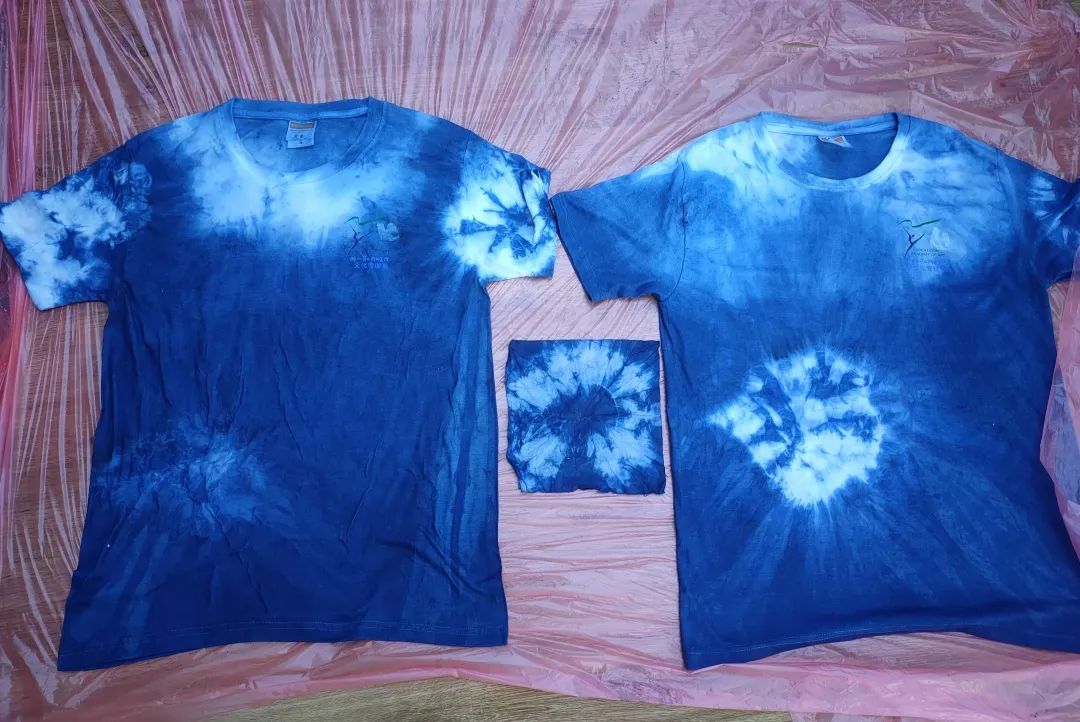 大致二十分鐘后將布料拿出,一件件獨(dú)一無二的作品孕育而生,大家在學(xué)習(xí)體驗(yàn)傳統(tǒng)扎染文化的同時(shí),收獲一份精美的藝術(shù)作品,也收獲了整個(gè)創(chuàng)意制作過程中的喜悅與成就感。扎染還結(jié)合了建黨百年主題元素特別制作了系列包含黨徽的漸變扎染作品。