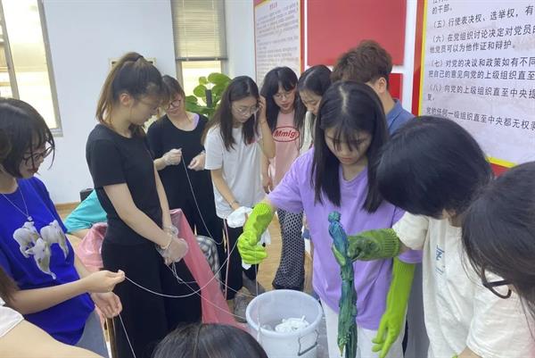 作為“巧藝傳承 匠心筑夢”——文化管理系第三屆“浙藝手藝”活動(dòng)周的手工藝活態(tài)體驗(yàn)項(xiàng)目,6月17日中午,文化管理系在13501開展扎染體驗(yàn),來自全校各系的報(bào)名師生參加活動(dòng)。