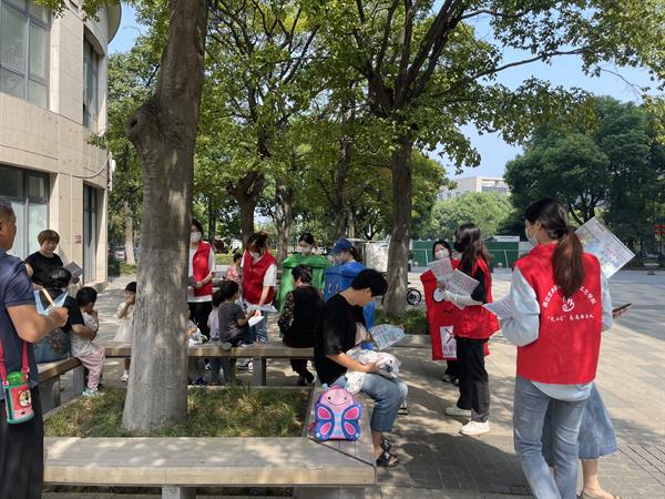 為創(chuàng)建更美的家園,藝小匠們在東信社區(qū)向社區(qū)居民宣傳“垃圾分類”小知識。