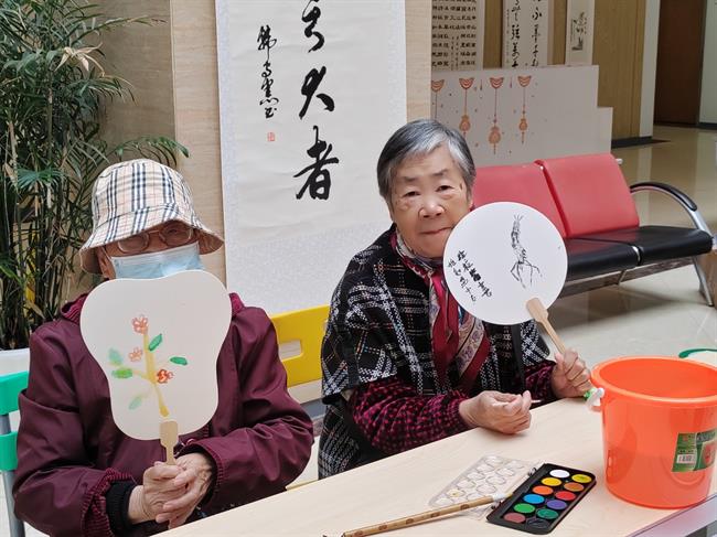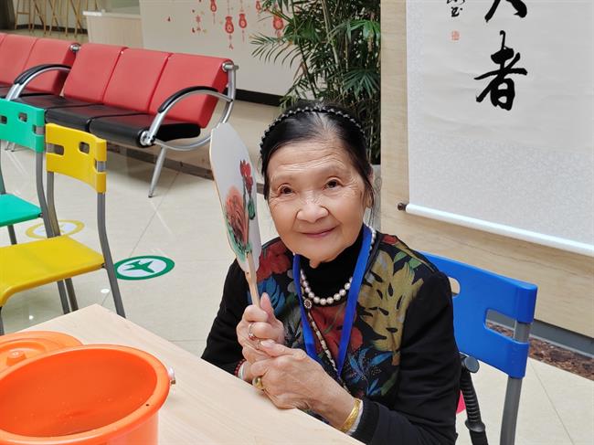 團(tuán)扇繪制體驗(yàn)活動(dòng)中,老人們發(fā)揮了書(shū)法、國(guó)畫(huà)的特長(zhǎng),紛紛繪制出創(chuàng)意滿滿、意蘊(yùn)豐厚的扇面畫(huà)作品。