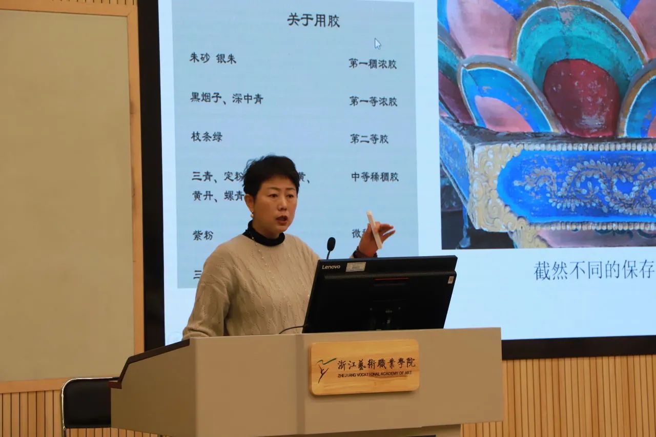 為了解古建筑壁畫彩塑的保護(hù)與修復(fù),拓寬對文物保護(hù)的視野和認(rèn)知。12月4日上午,手工藝學(xué)院開展了“求真守藝”大講堂第33講專題講座活動,特邀中國文化遺產(chǎn)研究院研究館員,文博教育科技培訓(xùn)學(xué)院教務(wù)長,全國文物保護(hù)行業(yè)職業(yè)教育教學(xué)指導(dǎo)委員會副秘書長張曉彤帶來一場題為《古建筑壁畫彩塑保護(hù)修復(fù)前期研究教學(xué)與實踐》的專題講座,講座由文物修復(fù)與保護(hù)教研室主任潘文娟主持。