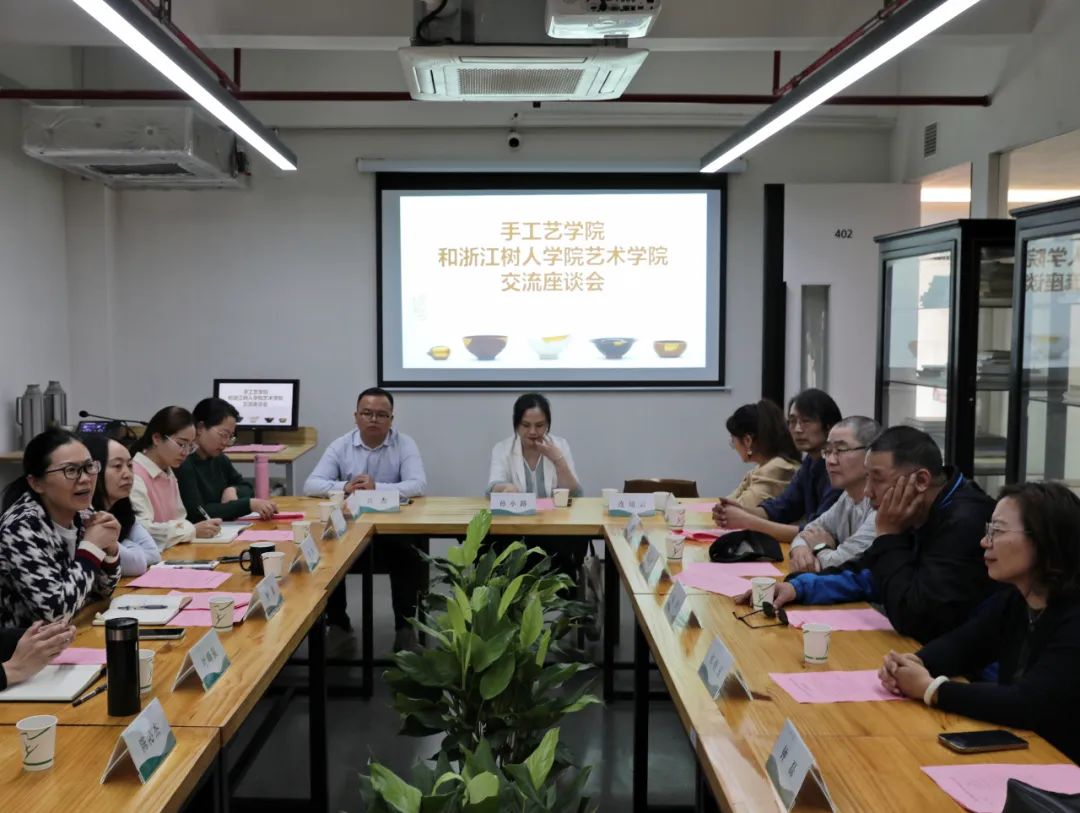 趙燕對(duì)我院熱情的接待表達(dá)感謝。他提出浙江樹(shù)人學(xué)院藝術(shù)學(xué)院面臨的主要發(fā)展困境和難點(diǎn)是培養(yǎng)目標(biāo)不清晰,而手工藝學(xué)院的專(zhuān)業(yè)構(gòu)架、培養(yǎng)目標(biāo)正好與其相似,希望通過(guò)調(diào)研學(xué)習(xí),搭建校際合作交流的平臺(tái),增進(jìn)彼此之間的友誼,攜手在教學(xué)改革、產(chǎn)教融合的道路上彼此賦能,砥礪前行。趙燕表示,學(xué)科建設(shè)要把好方向,走好每一步、搞好每一環(huán),不斷完善落實(shí)人才培養(yǎng)方案,希望能在與手工藝學(xué)院交流中收獲寶貴經(jīng)驗(yàn)。