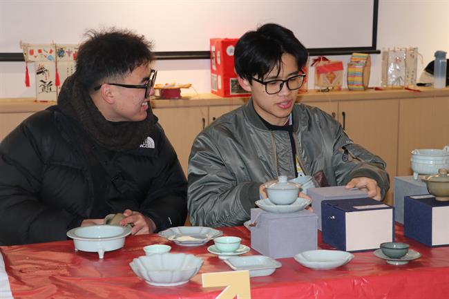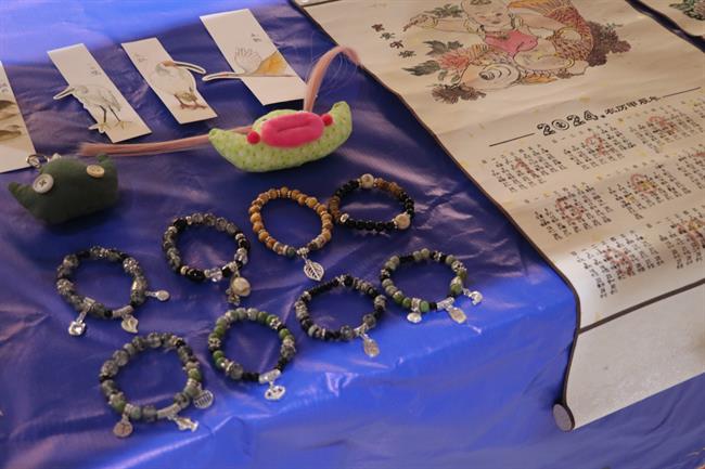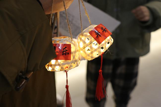 活動(dòng)當(dāng)天,賞燈游園會(huì)區(qū)域,在手工藝學(xué)院的學(xué)生們的攤位上,草木染圍巾、飾品、藍(lán)染年歷、水印木刻掛歷、竹編花燈、青瓷花口杯、手工手鏈、掛飾、書簽……傳統(tǒng)手工藝品琳瑯滿目,引得游客紛紛駐足。學(xué)生利用自身所學(xué)知識(shí),在傳統(tǒng)技藝的基礎(chǔ)上融合起新春、元宵的元素,充分推廣傳統(tǒng)手工藝的獨(dú)特魅力,通過靜態(tài)展陳和動(dòng)態(tài)展演讓古老手藝煥發(fā)出新的生機(jī),讓游客近距離感受到非遺之美,體會(huì)別樣的年味。