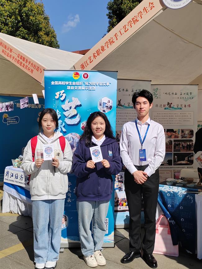 3月22日至24日,浙藝師生赴貴州師范大學(xué)參加由團(tuán)中央指導(dǎo)、全國(guó)學(xué)聯(lián)主辦、貴州省學(xué)聯(lián)承辦的全國(guó)高校學(xué)生會(huì)組織“我為同學(xué)辦實(shí)事”交流展示活動(dòng)。經(jīng)省級(jí)推報(bào)、全國(guó)遴選,評(píng)委評(píng)審、同學(xué)滿(mǎn)意度調(diào)查和學(xué)生觀察員評(píng)議,我校“巧藝傳承,匠心筑夢(mèng)——非遺傳承在浙里”項(xiàng)目入選全國(guó)100個(gè)精品項(xiàng)目和“最受同學(xué)歡迎”項(xiàng)目。