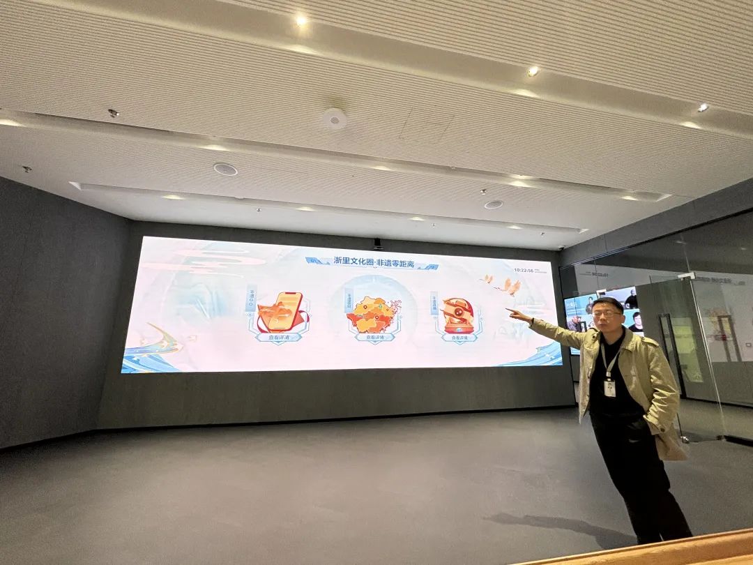 省非遺保護中心(館)綜合辦公室副主任鄭為貴陪同調研,詳細介紹了場館總體情況、樓層分布,以及強大的浙江非遺數字大腦。