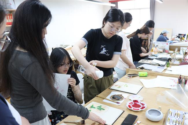 歡聲笑語在畫室流淌,同學(xué)們專注創(chuàng)作,水墨拓印的瞬間,壓力悄然消散,心靈在藝術(shù)創(chuàng)作中得到治愈與放松。