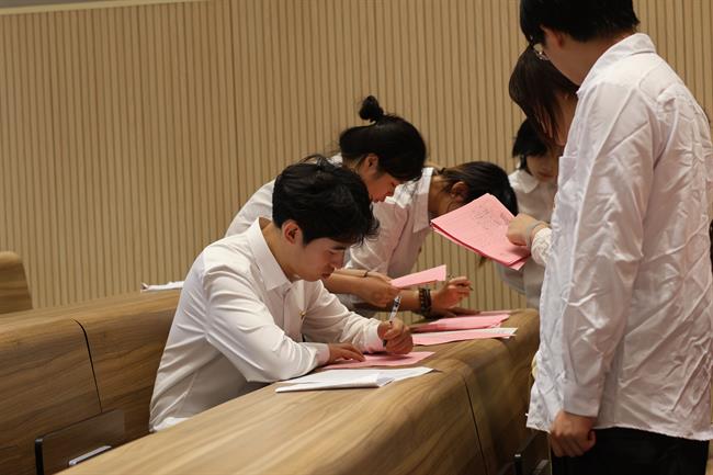 全體與會(huì)人員奏唱團(tuán)歌后,陳琳致閉幕詞。她寄語新一屆團(tuán)學(xué)干部傳承優(yōu)良傳統(tǒng),踐行“全心全意為同學(xué)服務(wù)”的宗旨,團(tuán)結(jié)帶領(lǐng)全院青年學(xué)子在傳承非遺文化、服務(wù)社會(huì)發(fā)展中展現(xiàn)青春作為!