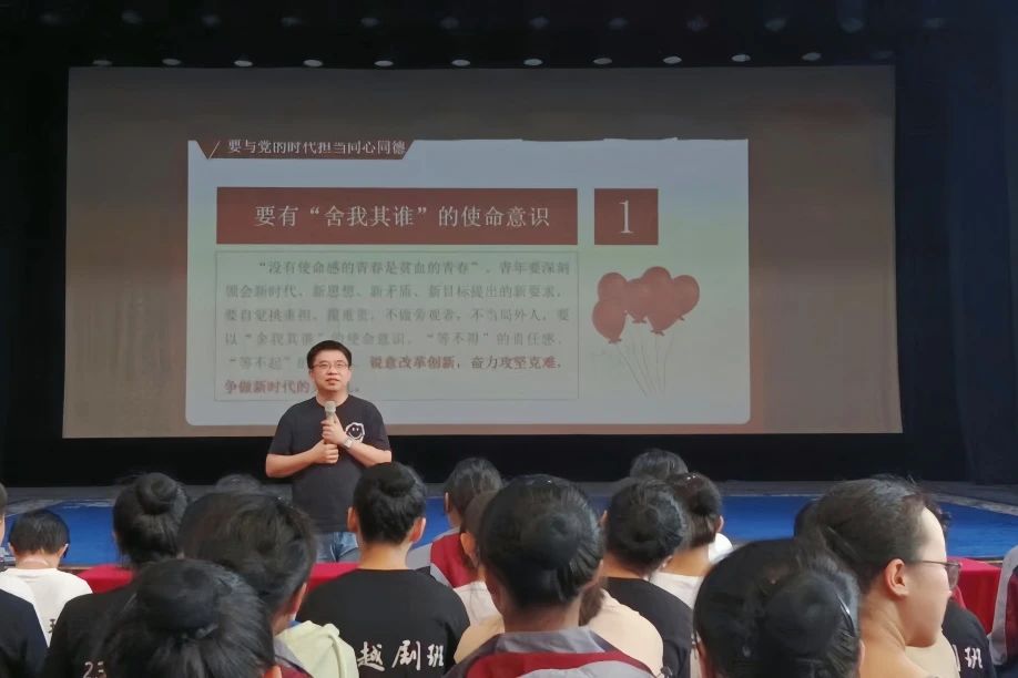 謝志勇以“永遠跟黨走 建功新時代”為題,為全體學生講授黨課。他講到,青春充滿激情和朝氣,腳踏實地、真抓實干,是青春里最難能可貴的品質(zhì)。習近平總書記寄語廣大青年“空談?wù)`國,實干興邦”,青少年應(yīng)立志做有理想、敢擔當、能吃苦、肯奮斗的新時代好青年,與黨同心同向、同心同德、同心同行。希望同學們要自覺胸懷天下,要堅定人生信仰,要善養(yǎng)浩然正氣;要有“舍我其誰”的使命意識、“攻城拔寨”的果敢作風、“善作善成”的能力本領(lǐng),從我做起,從現(xiàn)在做起,從一點一滴的小事做起。波瀾壯闊的社會主義現(xiàn)代化建設(shè)偉業(yè),為青年提供了展翅翱翔、揚帆遠航的歷史大舞臺。在習近平新時代中國特色社會主義思想指引下,中國開啟了新征程,開始譜寫新篇章。青年是祖國建設(shè)的生力軍,應(yīng)將建設(shè)祖國的重任挑在肩頭,既要全面系統(tǒng)的練就真本領(lǐng),更要學以致用,在實踐中修正和充實所學本領(lǐng),積極向黨組織靠攏,為國家建設(shè)貢獻力量。