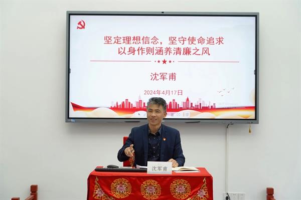 沈軍甫以《堅定理想信念,堅守使命追求,以身作則涵養(yǎng)勤廉之風》為題上廉政黨課。他結合清廉學校建設、師德師風建設和黨紀學習教育,從“充分認清當