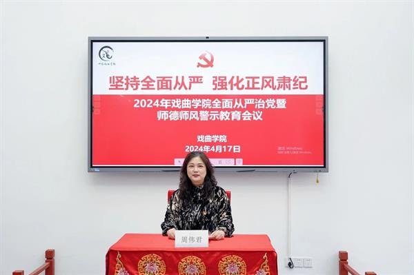 戲曲學院召開2024年度全面從嚴治黨暨師德師風警示教育會議。校黨委委員、紀委書記沈軍甫出席會議,學院黨總支書記謝志勇主持,黨政班子成員、全體教職工