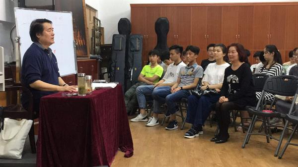 朱曉谷教授為上海音樂學(xué)院民樂作曲專業(yè)的教師,對于民族器樂的配器、編配、創(chuàng)作等問題有著自己獨(dú)到的見解。此次講座朱老師針對現(xiàn)代民樂樂隊(duì)和室內(nèi)樂作品的創(chuàng)作風(fēng)格、創(chuàng)作手法,為老師和同學(xué)們進(jìn)行了深入淺出的分析。民樂專業(yè)有部分年齡較小,音樂理論知識相對薄弱的但對作曲十分感興趣的同學(xué)也來聽了講座,朱老師為了讓他們也能聽懂講座,列舉了許多恰當(dāng)且易懂的例子。朱老師幽默風(fēng)趣的講座風(fēng)格令在場的每一位學(xué)習(xí)者都忍俊不禁,常有歡聲笑語不斷傳出。