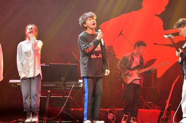 今年恰逢新中國成立70周年華誕,本次演出的大部分作品都緊緊圍繞“愛國”主題,演繹了一曲曲紅色經(jīng)典歌曲。開場曲《追尋》選自影片《建國大業(yè)》,周星宇、王俊祥二位男生演繹得深情大氣。鄭舒蔓同學帶來的《九兒》是一首難度高又具有很強社會影響力的歌曲,她張弛有度的演唱深深感染了觀眾。《新長征路上的搖滾》是由中國搖滾教父崔健原唱的經(jīng)典歌曲,經(jīng)周菲戈同學與一眾優(yōu)秀樂手的精彩演繹,迅速掀起了全場高潮。同樣具有搖滾精神的《我愛你中國》《大中國》兩部作品,17級流行班婁新宇、汪琪、楊昊燁、顏志豪、張凌康五名男生的激情唱響賦予了歌曲新的風采。有過了燃情四射,也有溫柔的訴說。歌曲《祖國兒女》、電影《建黨偉業(yè)》主題曲《有一天》、老歌新唱《映山紅》、影片《芳華》主題曲《絨花》、紀念5.12汶川地震的公益歌曲《愛與希望》這些曾在熒屏、晚會屢屢唱響的歌當晚也亮相舞臺,由兩個畢業(yè)班的女生傾情演繹。薩克斯重奏《我的祖國》將經(jīng)典紅色歌曲改編為器樂曲,成為一大亮點。