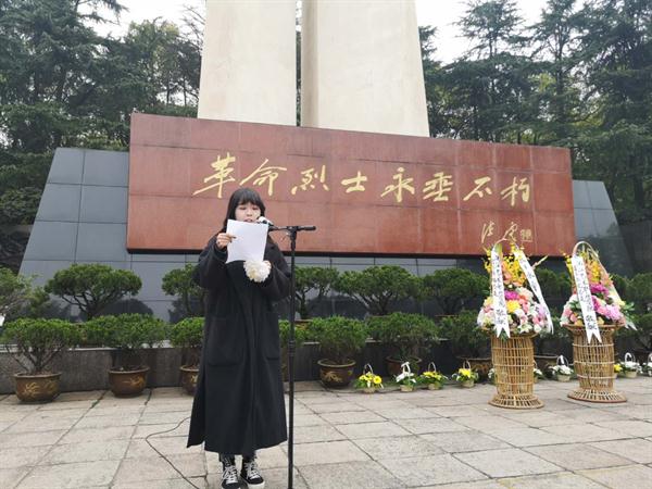 教師代表汪奕楠宣讀悼詞。她說,雖然不能一一講出先烈們的姓名,但他們一定是最可親可敬的人,是父母心中最愛的人,是我們敬重與愛戴的人。人民不會忘記,我們不會忘記,國家不會忘記,歷史不會忘記,先烈們永垂不朽!