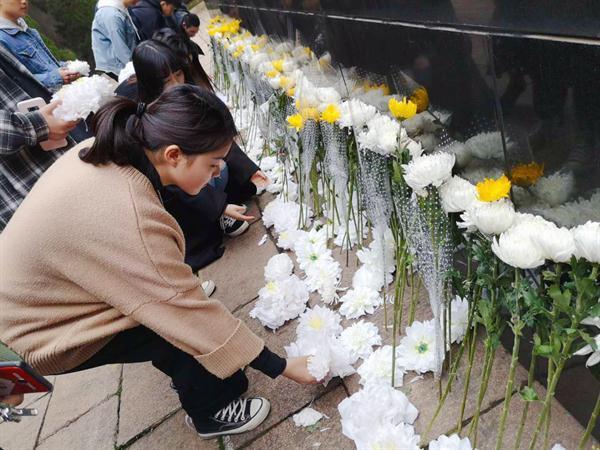 在前一天下午,音樂系學(xué)子懷揣著崇敬之心,親手制作了寄托哀思的小白花,來表達對先烈們的由衷敬意。