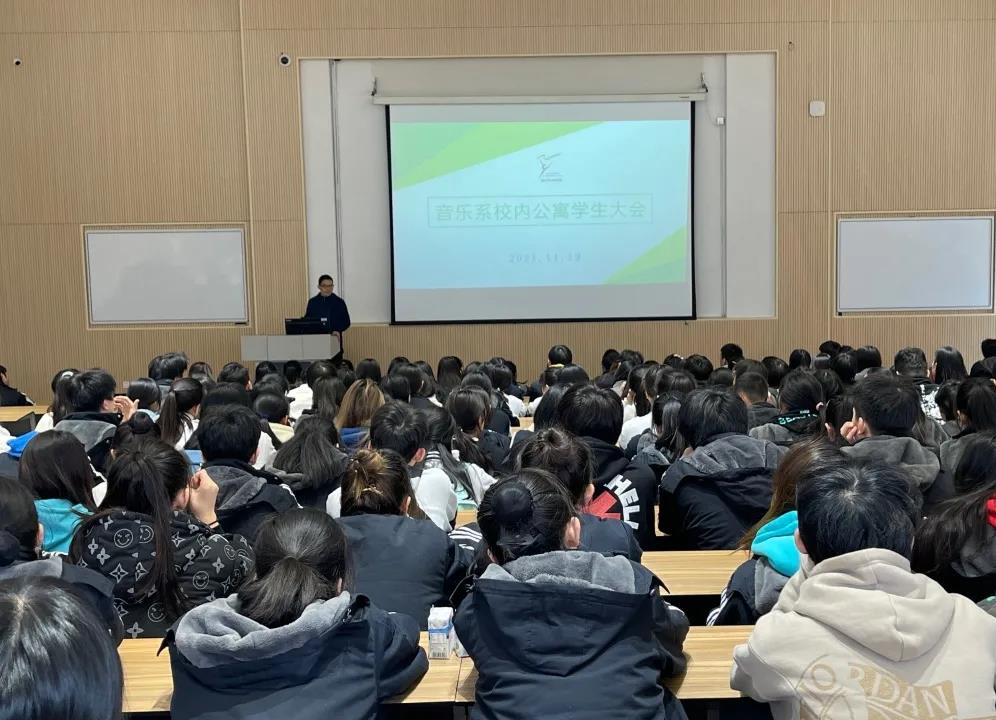 為進(jìn)一步增強(qiáng)音樂系中專段學(xué)生管理,11月19日中午,音樂系召開校內(nèi)公寓學(xué)生大會(huì)。學(xué)工部(學(xué)生處、保衛(wèi)處)附中學(xué)生科科長(zhǎng)頡順虎,音樂系中專段班主任、輔導(dǎo)員出席,全體入住校內(nèi)公寓學(xué)生參加。會(huì)議由音樂系黨總支專職副書記劉夢(mèng)偉主持。