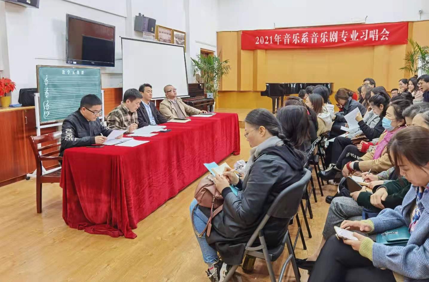為了進(jìn)一步夯實(shí)黨史學(xué)習(xí)教育的成效,教育引導(dǎo)全體教職工學(xué)黨史、悟思想、辦實(shí)事、開新局,做到學(xué)史明理、學(xué)史增信、學(xué)史崇德、學(xué)史力行,4月8日,音樂(lè)系在系合唱教室開展教職工政治理論學(xué)習(xí)。