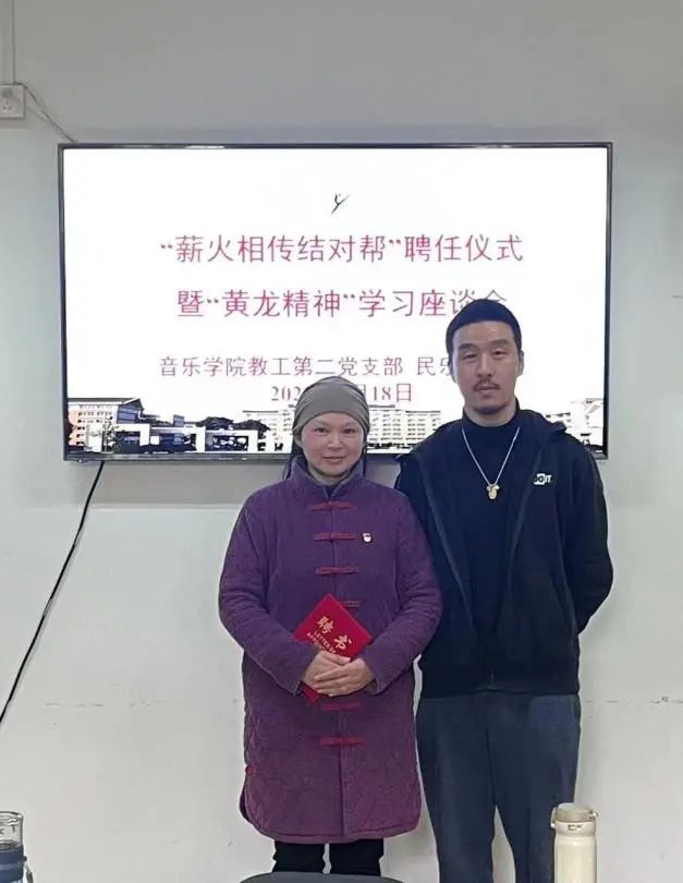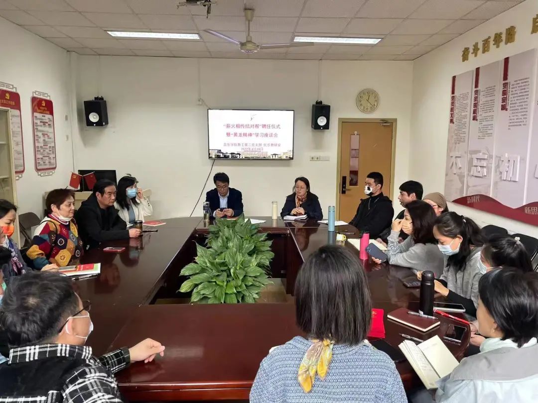 4月18日,音樂學(xué)院教工第二黨支部、民樂教研室在3101黨員之家舉行“薪火相傳結(jié)對(duì)幫”聘任儀式暨“黃龍精神”交流分享。吳樟華、朱學(xué)富、陸曙鳴、馬崊等4位正高職稱黨員教師受聘結(jié)對(duì)4名青年教師,并作“黃龍精神”與教書育人心得分享。支部黨員、民樂教研室全體教師參加。
