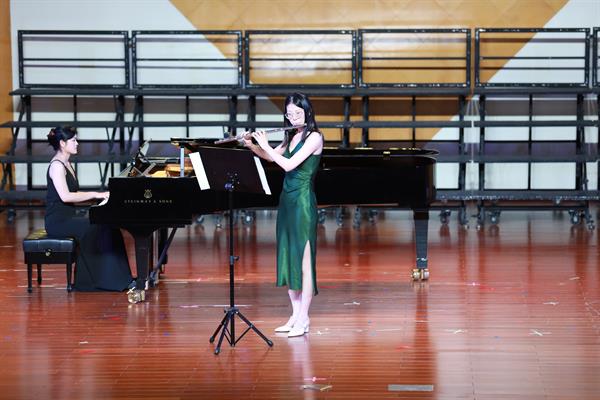 第二曲是普朗克《e小調(diào)長笛奏鳴曲(第一樂章)》,盧奕含的長笛與鄭好的鋼琴伴奏配合默契,準確的把握了樂曲的均衡感,將我們帶到了法國新古典主義音樂中,惆悵之意與歡快的節(jié)奏交替出現(xiàn),色彩對比強烈。