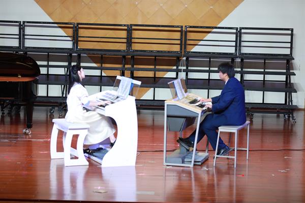 葉羽茜和林兢赫演奏了雙排鍵重奏《美女與野獸》。現(xiàn)代電聲樂器的合作帶來的震撼音效,其交響化、立體化讓聽眾恍惚置身于迪士尼大片中。