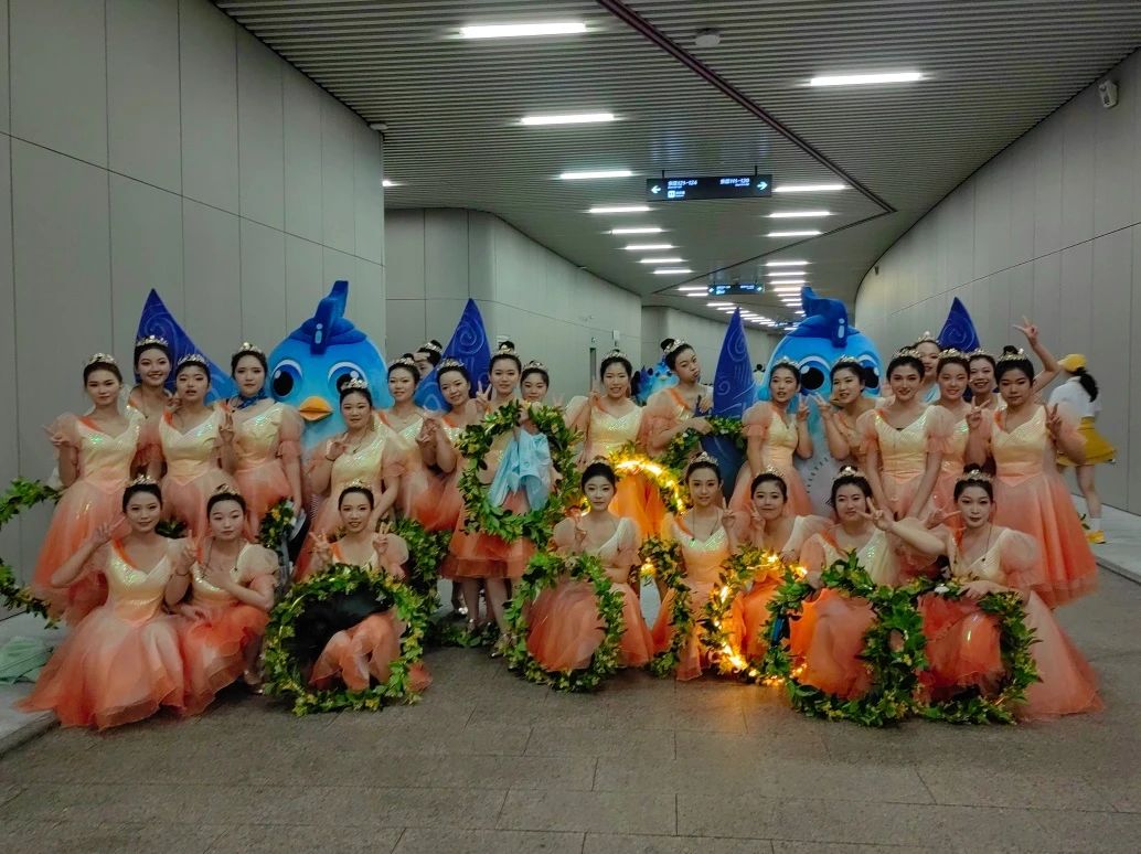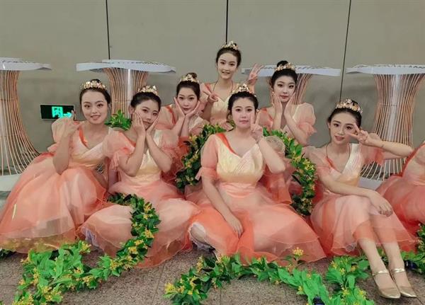 本次開幕式由金桂為主要元素,通過科技手段打造了一個(gè)愛的舞臺(tái)。而我院32位同學(xué)們有幸參與這次連接亞洲的盛大演出,在包括第一篇章《心相約》、第三篇章《夢閃耀》和主題曲《我的深情為你守候》等節(jié)目中扮演金桂少女。”