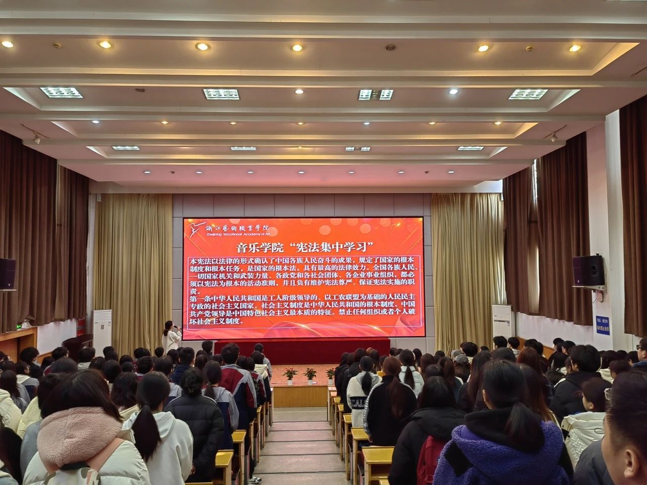 自11月28日起,音樂(lè)學(xué)院46個(gè)班級(jí)的班主任以《弘揚(yáng)社會(huì)主義法治精神,傳承中華優(yōu)秀傳統(tǒng)法律文化》為主題,組織開(kāi)展了主題班會(huì)。班會(huì)上,班主任從傳承憲法文化、創(chuàng)新法律文化等方面,帶領(lǐng)同學(xué)們感受憲法給國(guó)家發(fā)展、社會(huì)變革帶來(lái)的歷史性變化和巨大進(jìn)步,真切體會(huì)到憲法學(xué)習(xí)的重要意義,進(jìn)而自覺(jué)養(yǎng)成尊法、學(xué)法、守法、用法的良好習(xí)慣。