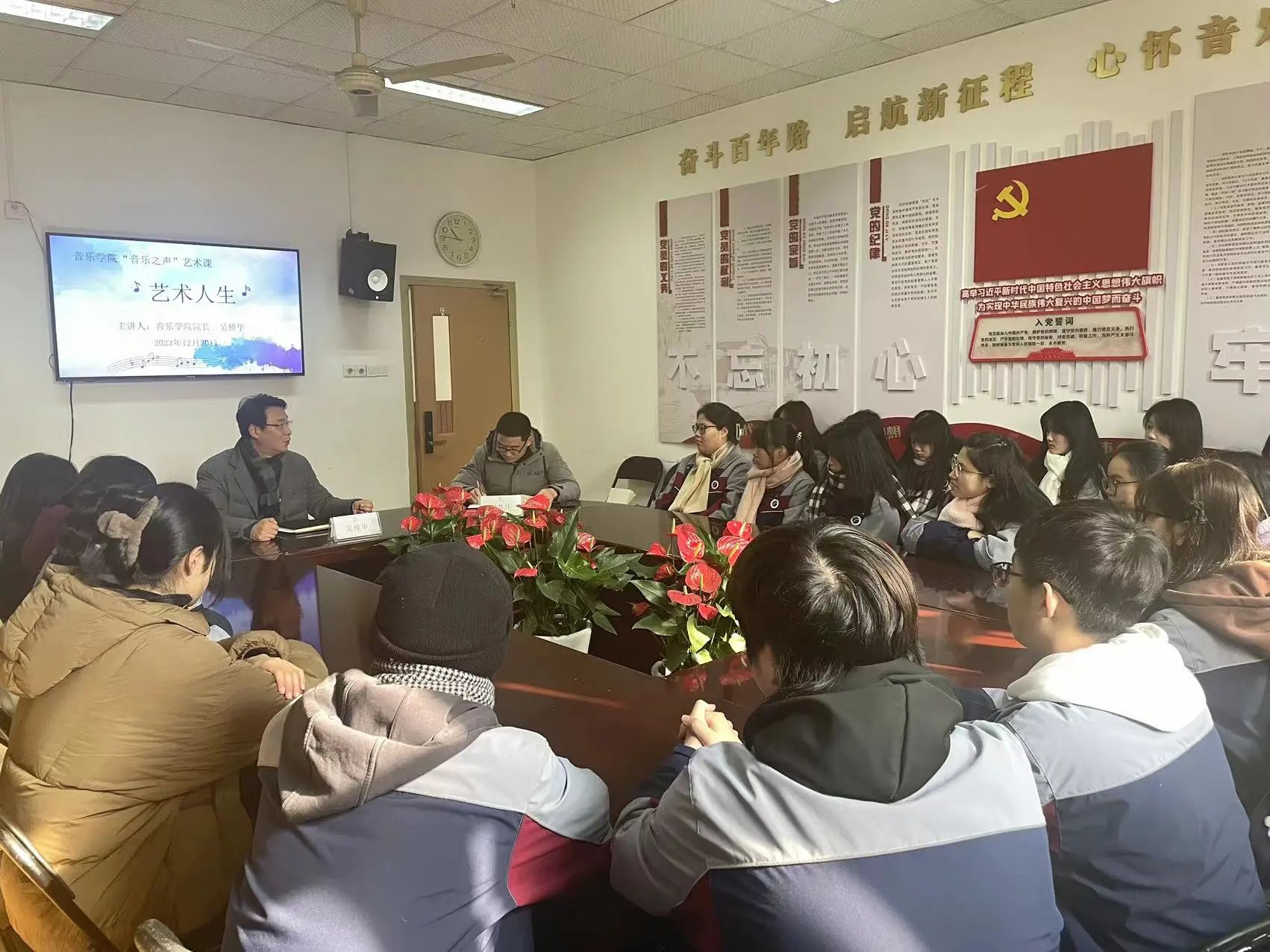 為進(jìn)一步加強(qiáng)師生溝通與交流,幫助同學(xué)們解決學(xué)習(xí)和生活上的困惑。12月20日,音樂學(xué)院組織召開以“藝術(shù)人生”為主題的“音樂之聲”藝術(shù)課。課上,音樂學(xué)院院長吳樟華與同學(xué)們親切交流分享了個人的藝術(shù)起源和學(xué)藝生涯等內(nèi)容,和同學(xué)們共話成長。